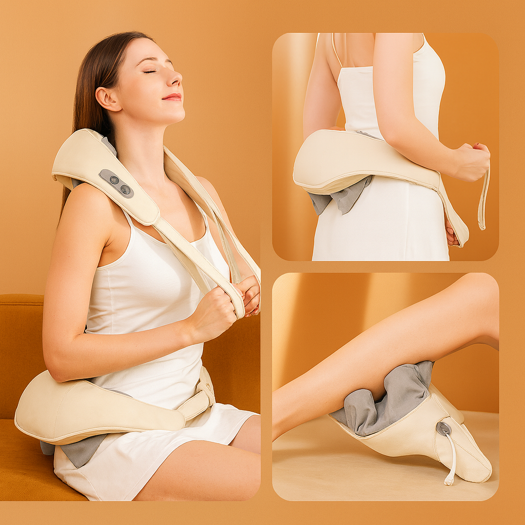 Experience deep comfort with our all-in-one massager designed for neck, shoulders, back, and legs. Adjustable straps and soothing heat help melt away tension — anytime, anywhere